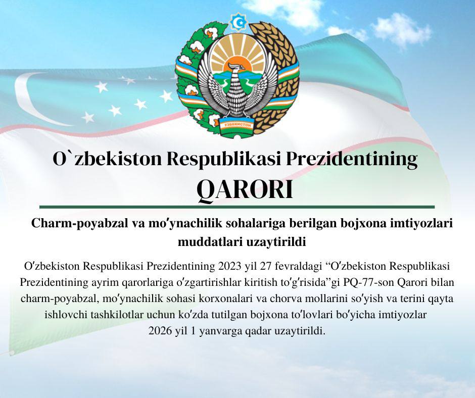 Bugun “Oʼzcharmsanoat” uyushmasi tashkil topganiga 5 yil toʼldi